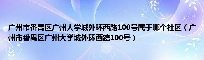 广州市番禺区广州大学城外环西路100号属于哪个社区(广州市番禺区广州大学城外环西路100号)