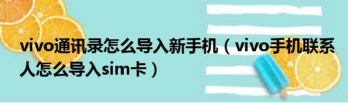 vivo通讯录怎么导入新手机(vivo手机联系人怎么导入sim卡)