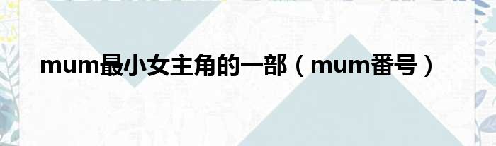 mum最小女主角的一部(mum番号)