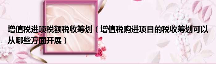 增值税进项税额税收筹划(增值税购进项目的税收筹划可以从哪些方面开展)